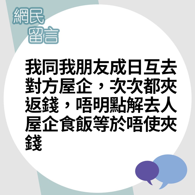 天氣寒冷,在家中打邊爐就夠晒暖笠笠,不過如果叫同親朋好友上門又應否夾錢呢?有網民在討論區上發文,指朋友上門一起打邊爐之後未有夾錢,但食的份量卻絕對不少,問大家應該如何處理。事件引來網民熱烈討論,不少人認為重點在於有沒有預先溝通,亦有人認為「叫得人上嚟食飯,一係親友,一係好友,我唔會收返人錢」。