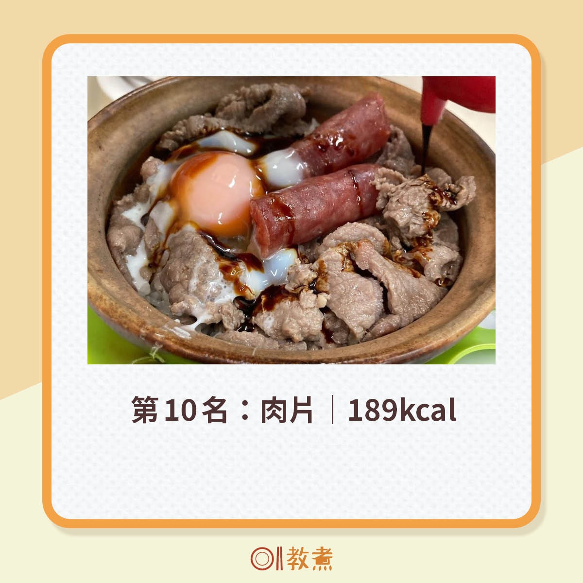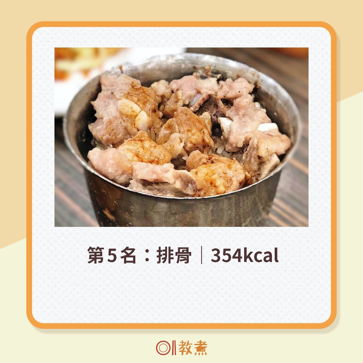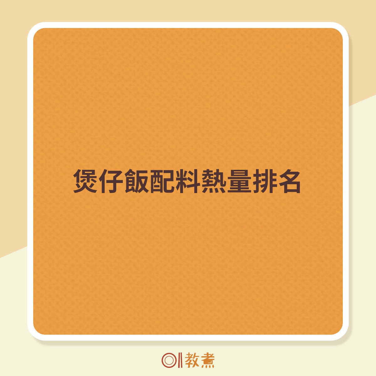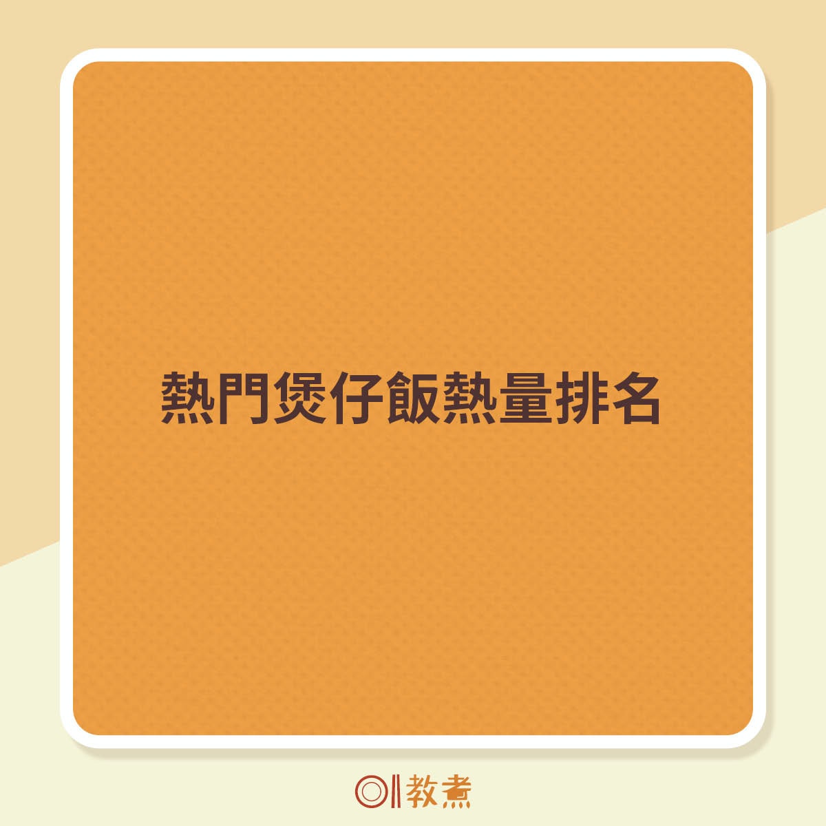 按圖看 10 款熱門煲仔飯的熱量排名(由低卡至高卡排列)(每 100 克計):