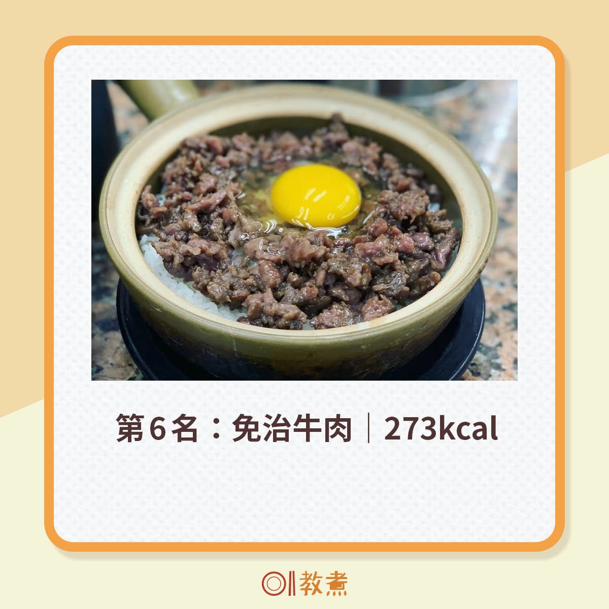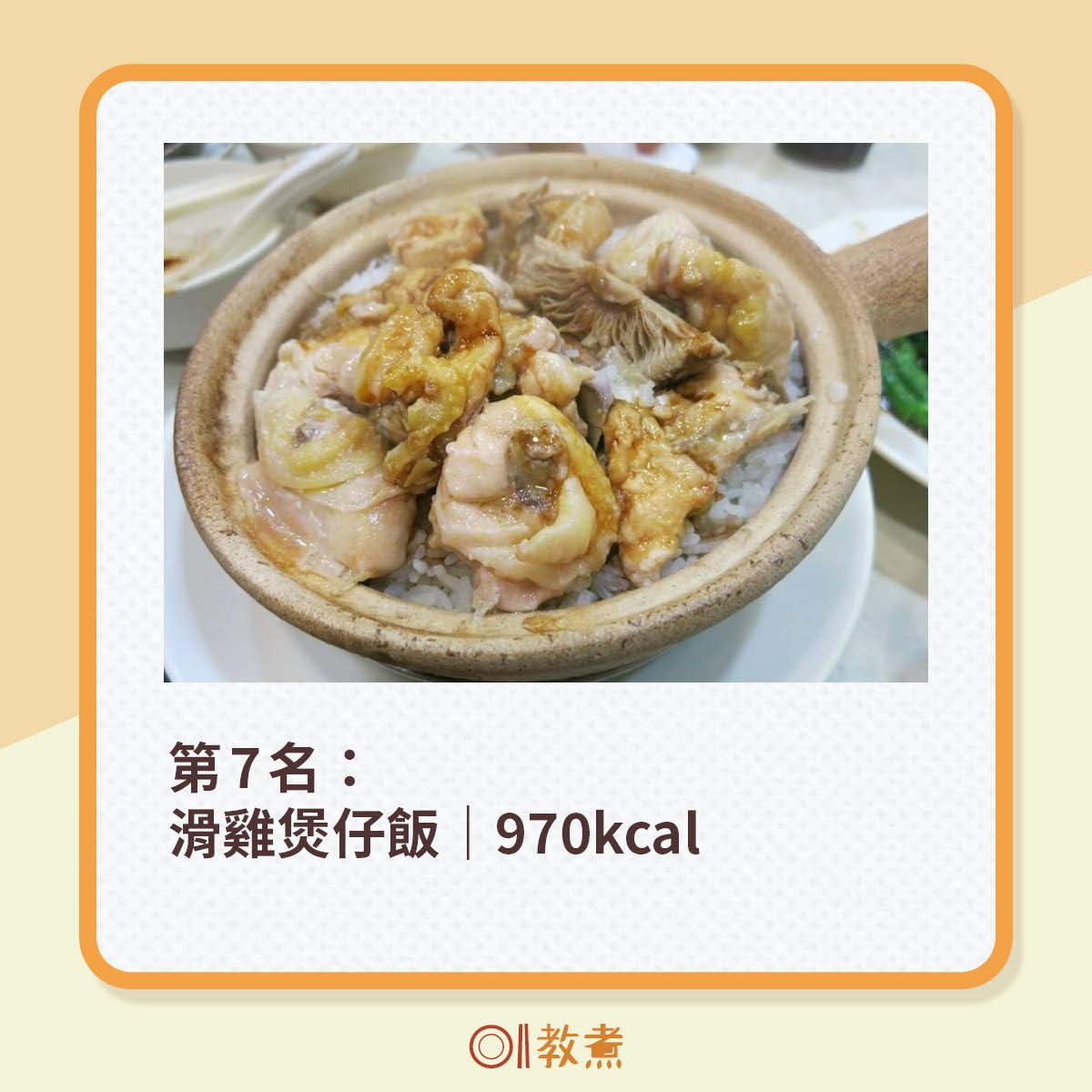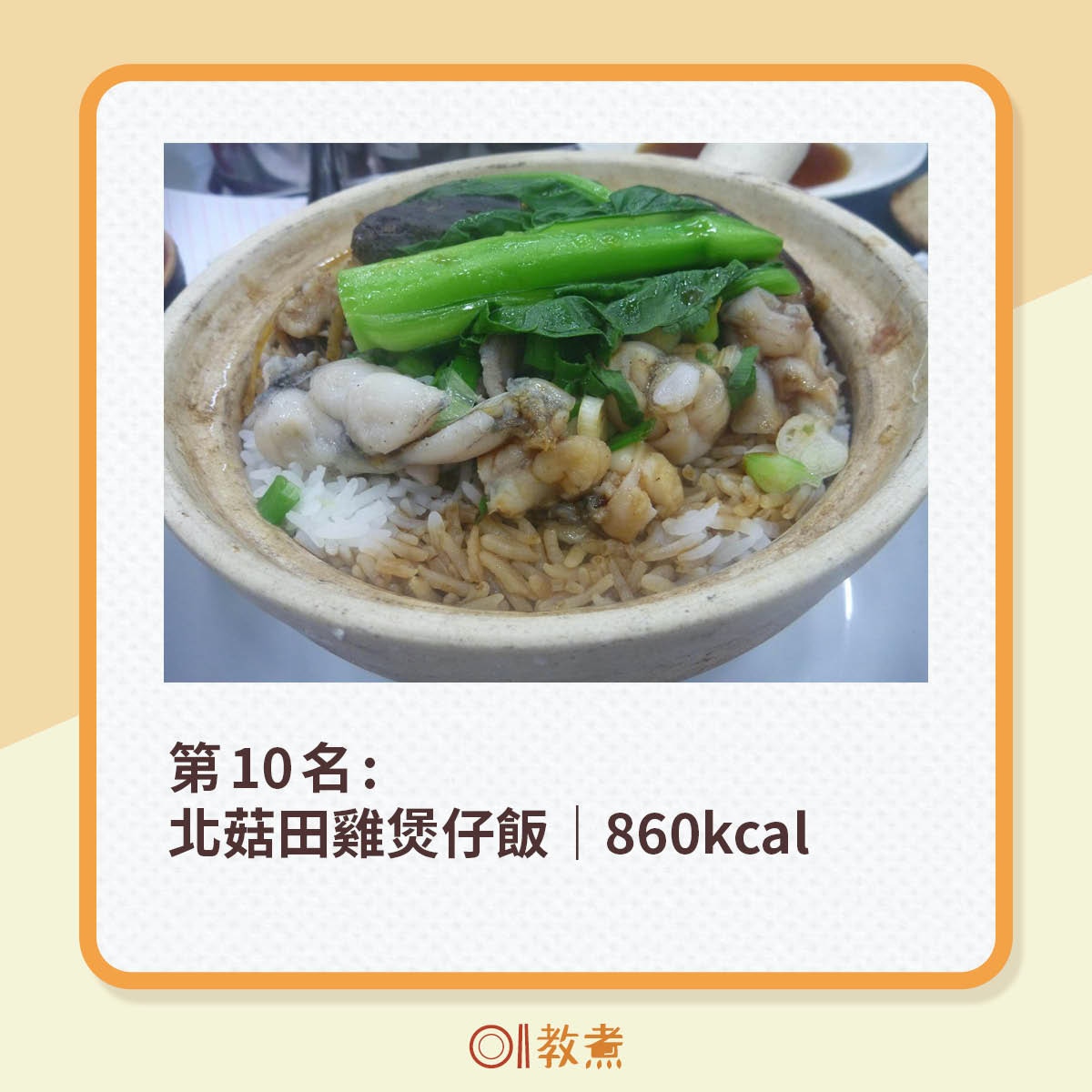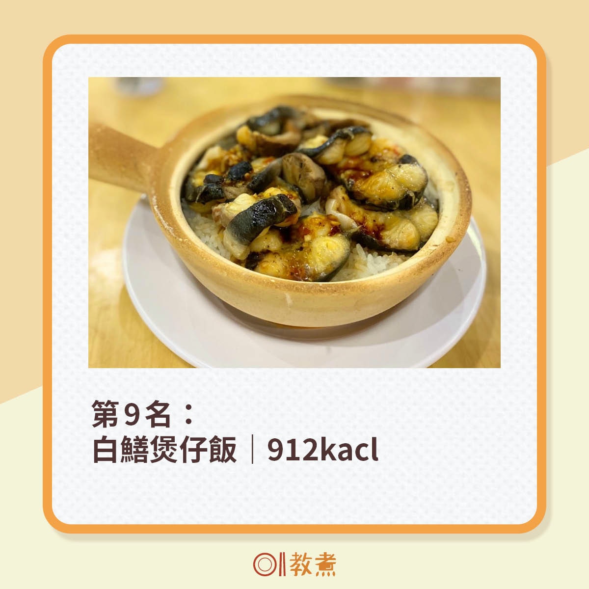 按圖看 10 款熱門煲仔飯的熱量排名(由低卡至高卡排列)(每 100 克計):