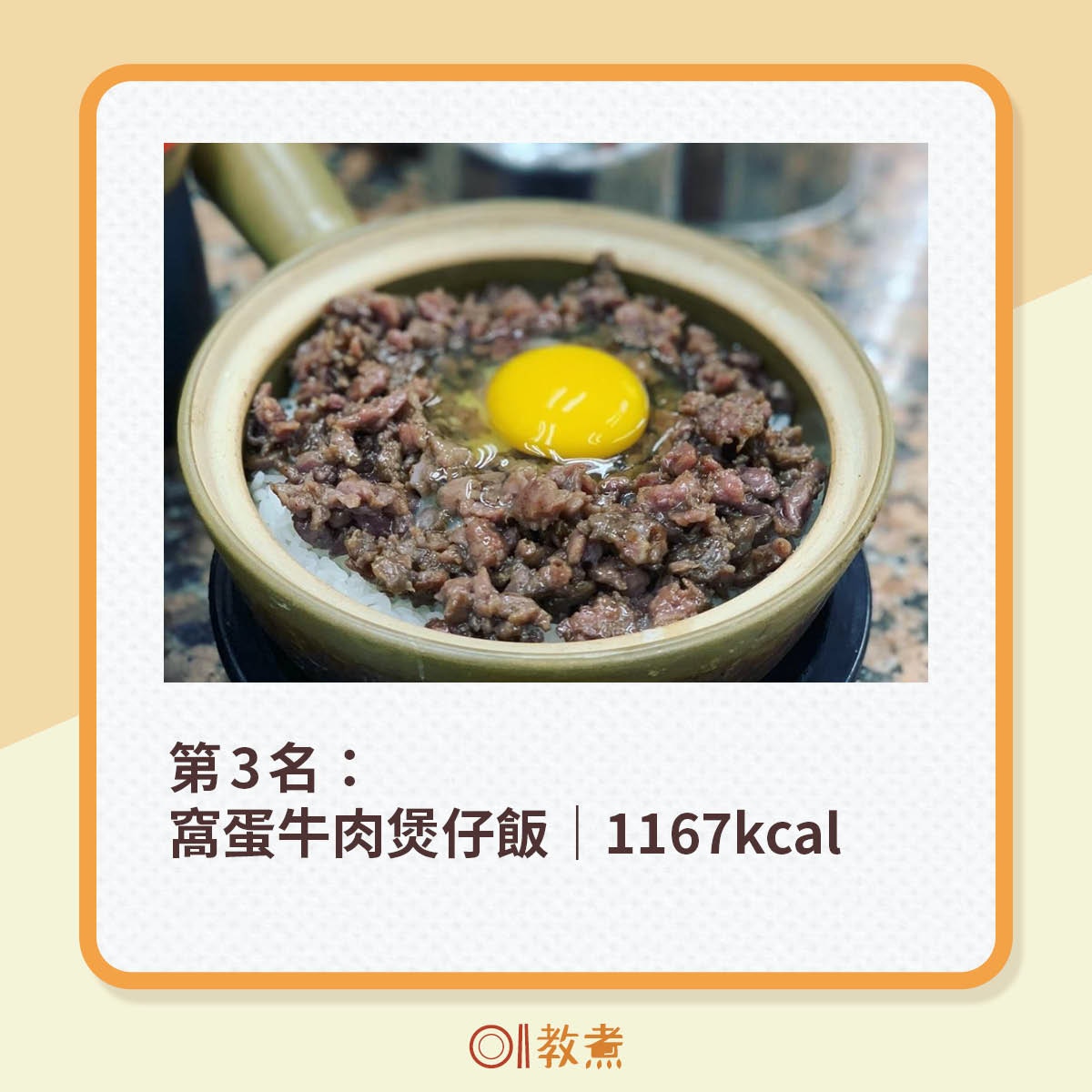 - 窩蛋牛肉煲仔飯:1167 卡路里