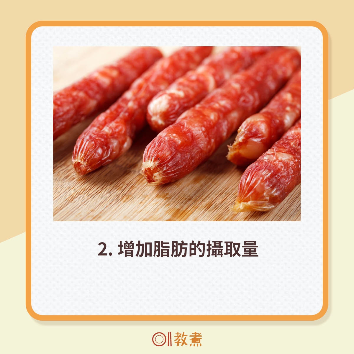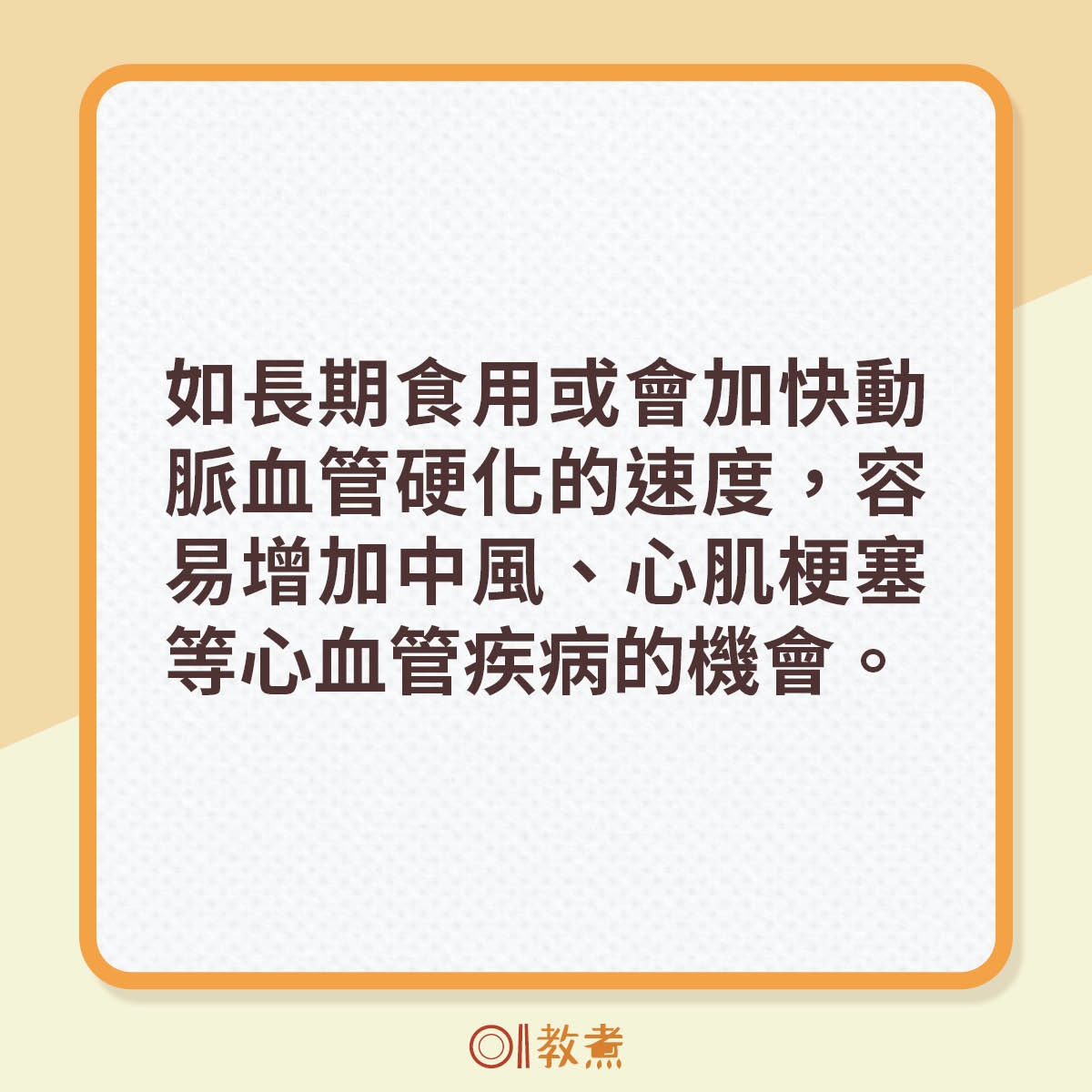 如長期食用或會加快動脈血管硬化的速度,容易增加中風、心肌梗塞等心血管疾病的機會。