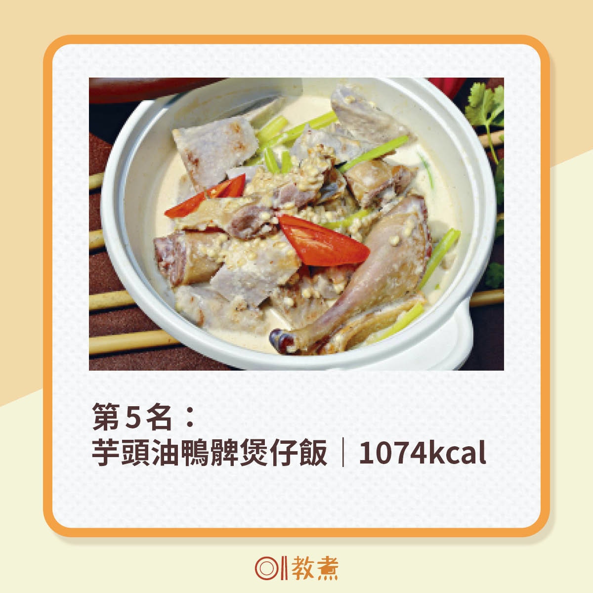 - 芋頭油鴨髀煲仔飯:1074 卡路里