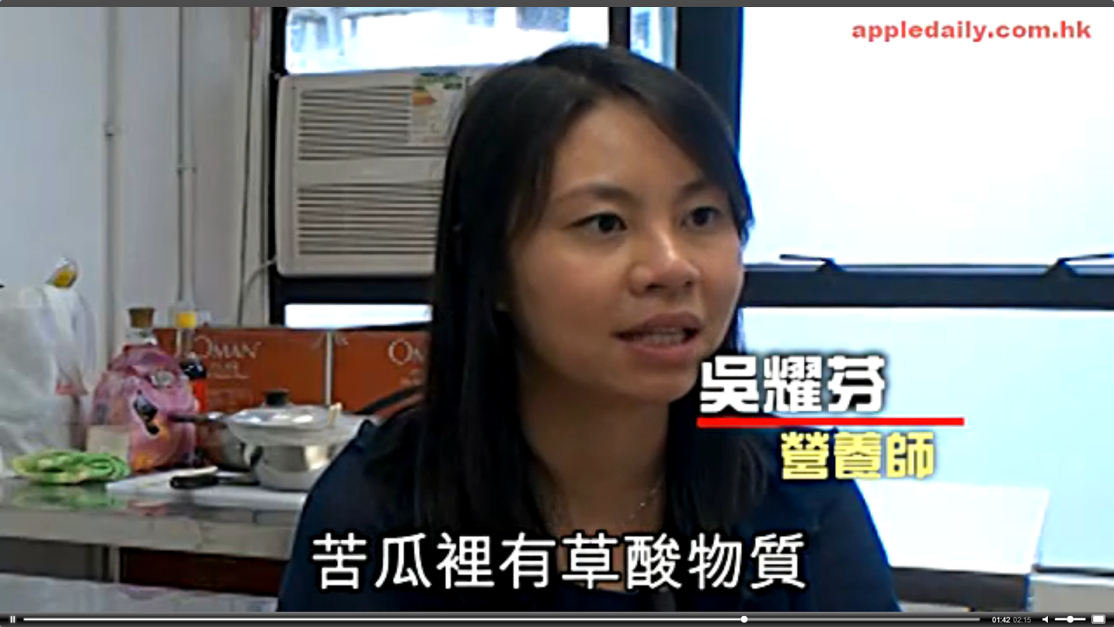 「營養師吳耀芬指出,苦瓜中的苦瓜蟚和苦味素能增進食慾,健脾開胃,其所含的生物鹼類物質奎寧則可消炎退熱;用苦瓜榨成的新鮮汁液,也具降血糖作用,糖尿病患可適量飲用。