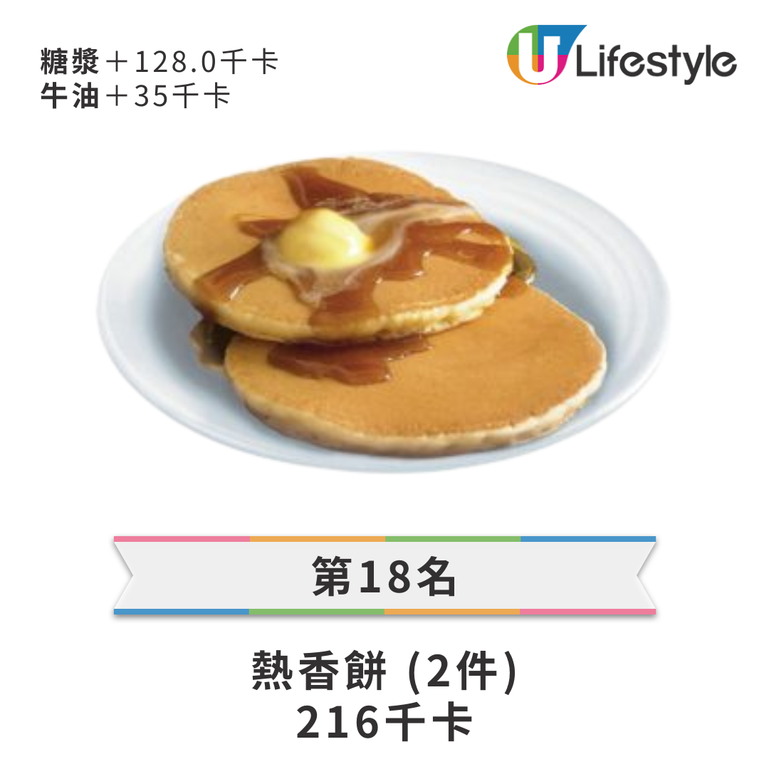 • 第 18 名: 熱香餅 (2件) — 216 kcal (糖漿+128, 牛油+35)