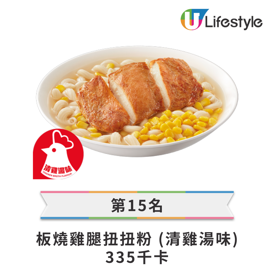 • 第 15 名: 板燒雞腿扭扭粉 (清雞湯味) — 335 kcal