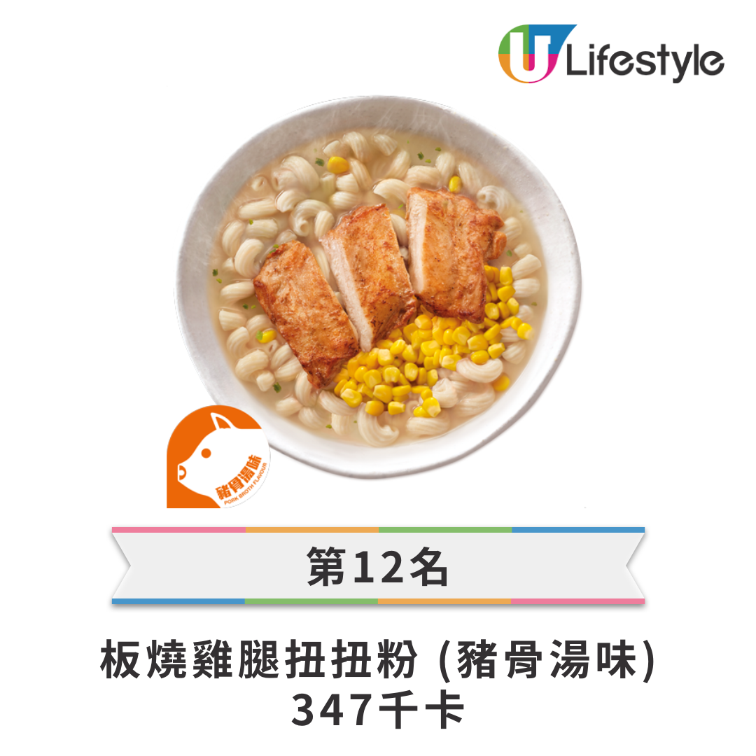 • 第 12 名: 板燒雞腿扭扭粉 (豬骨湯味) — 347 kcal