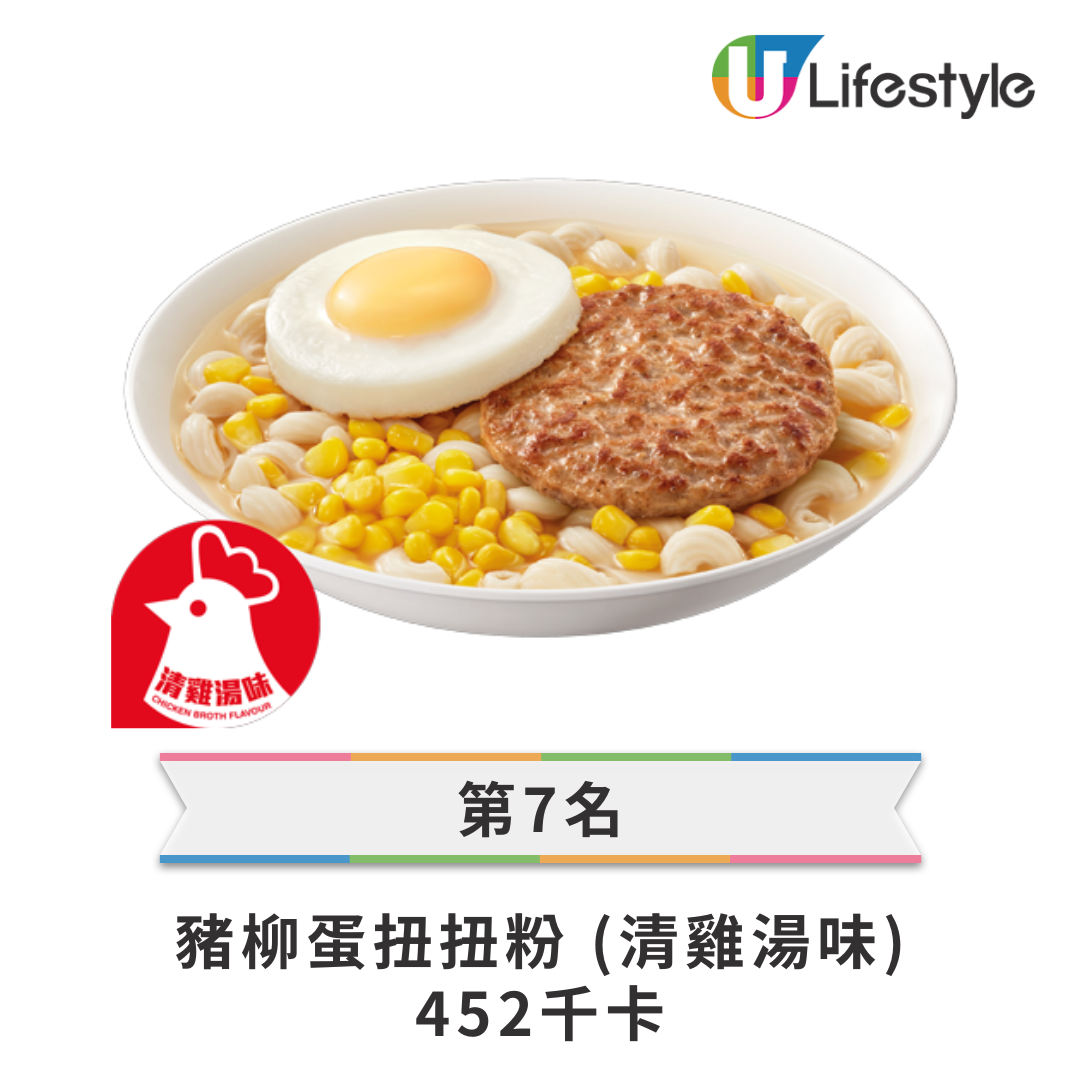 • 第 7 名: 豬柳蛋扭扭粉 (清雞湯味) — 452 kcal