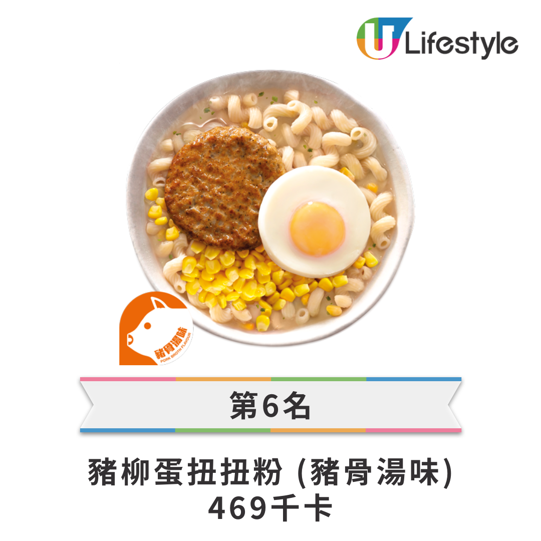 • 第 6 名: 豬柳蛋扭扭粉 (豬骨湯味) — 469 kcal