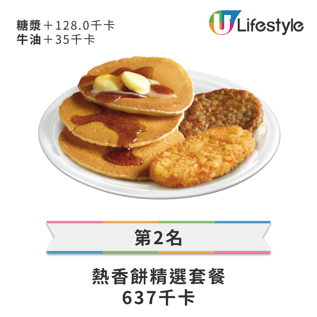 • 第 2 名: 熱香餅精選套餐 — 637 kcal