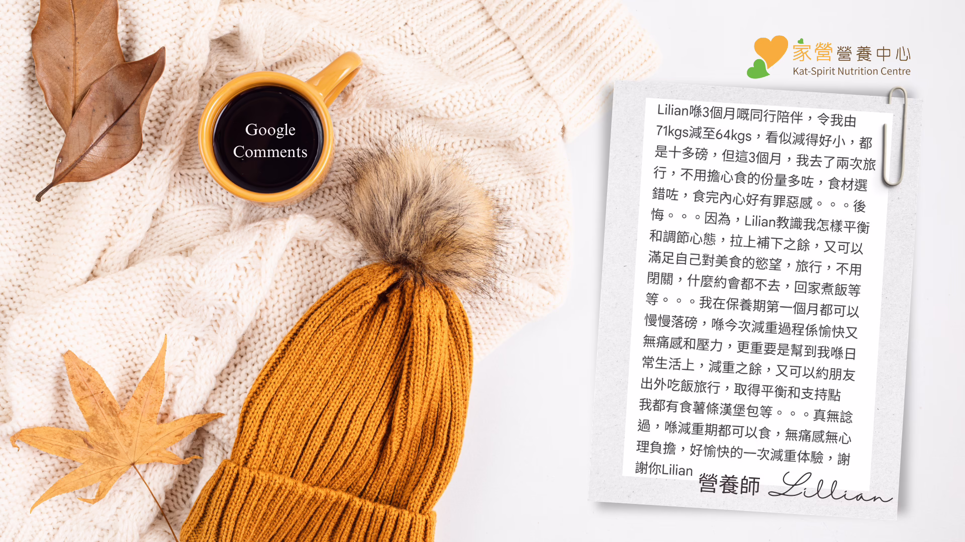客人減肥成功之後,又成功 keep 到,Kayla 營養師真係做得好好!客人感言…