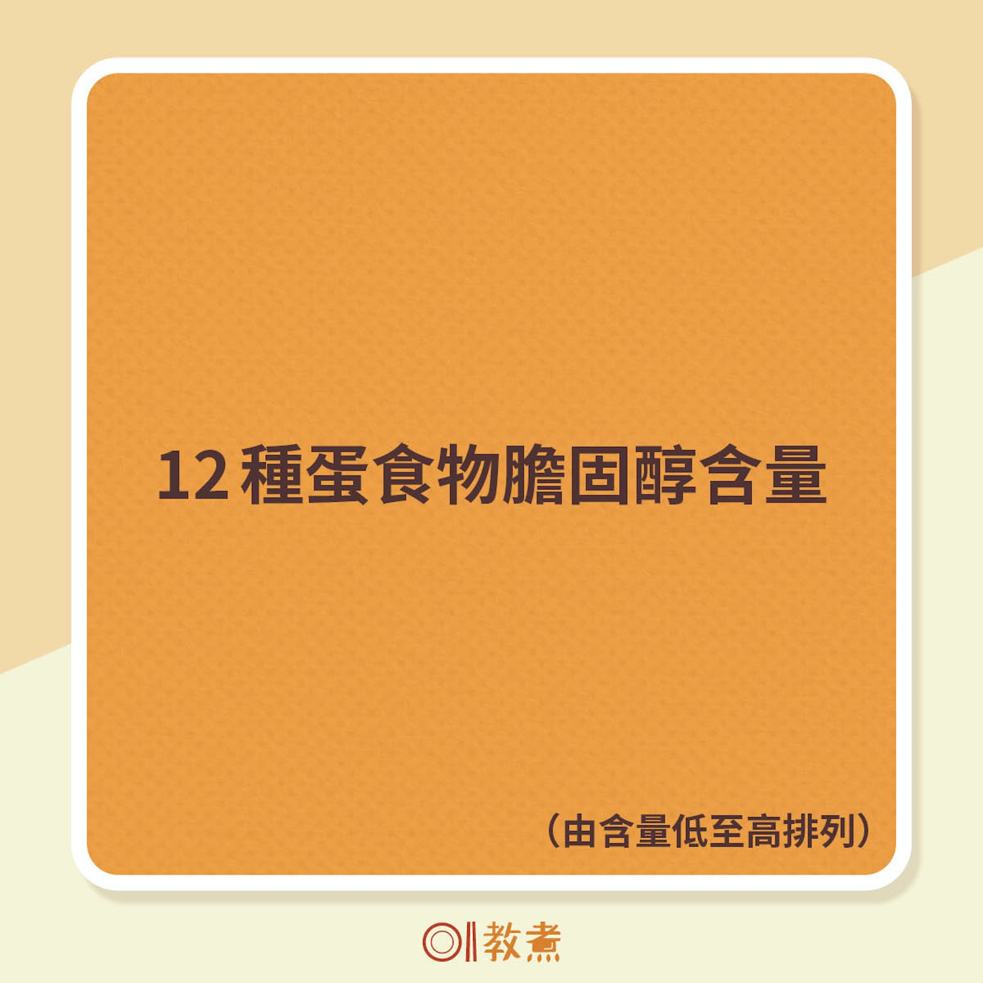 12 種蛋食物膽固醇含量(由低至高排列)︰