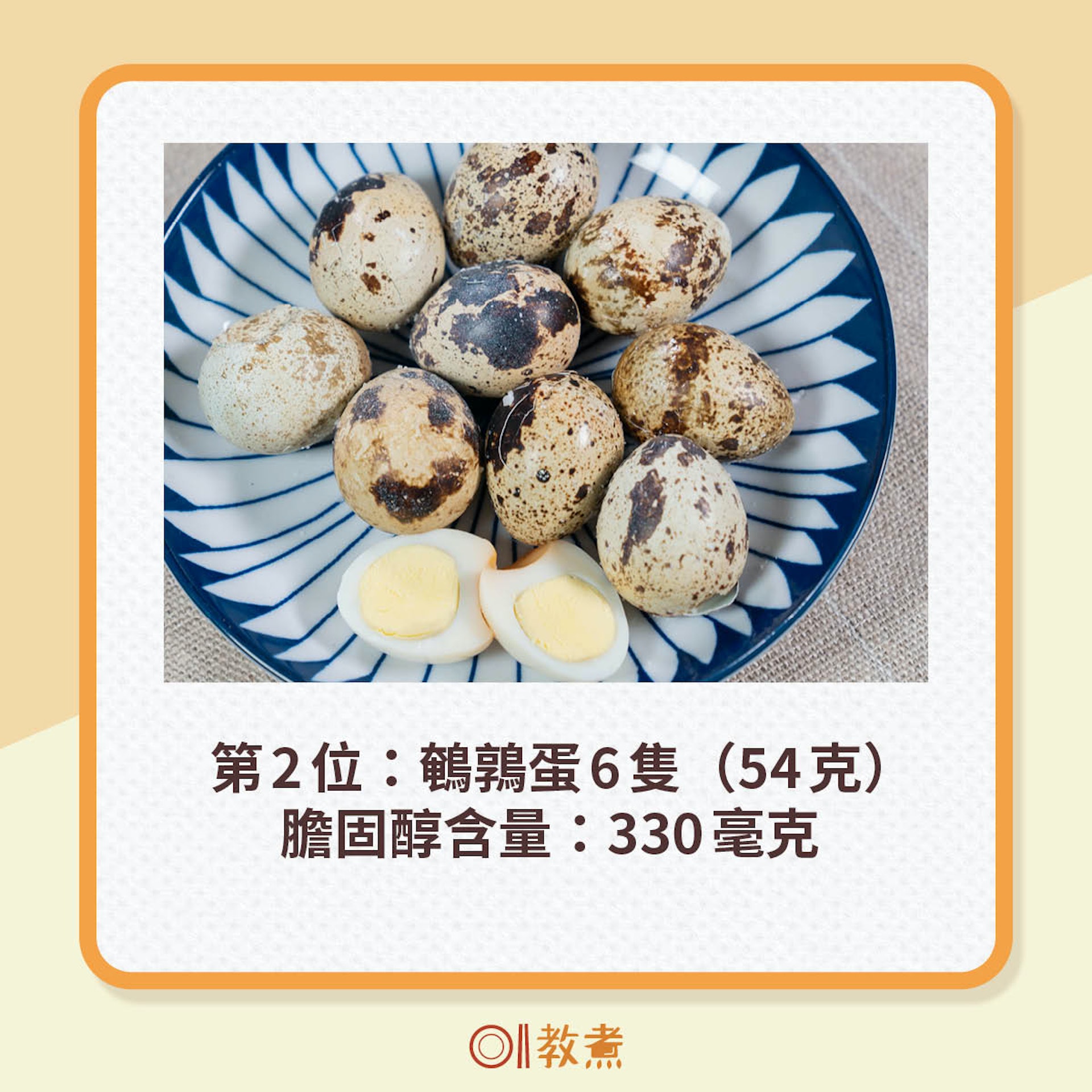 第 2 位:鵪鶉蛋 330 毫克 / 3 隻(54 克)
