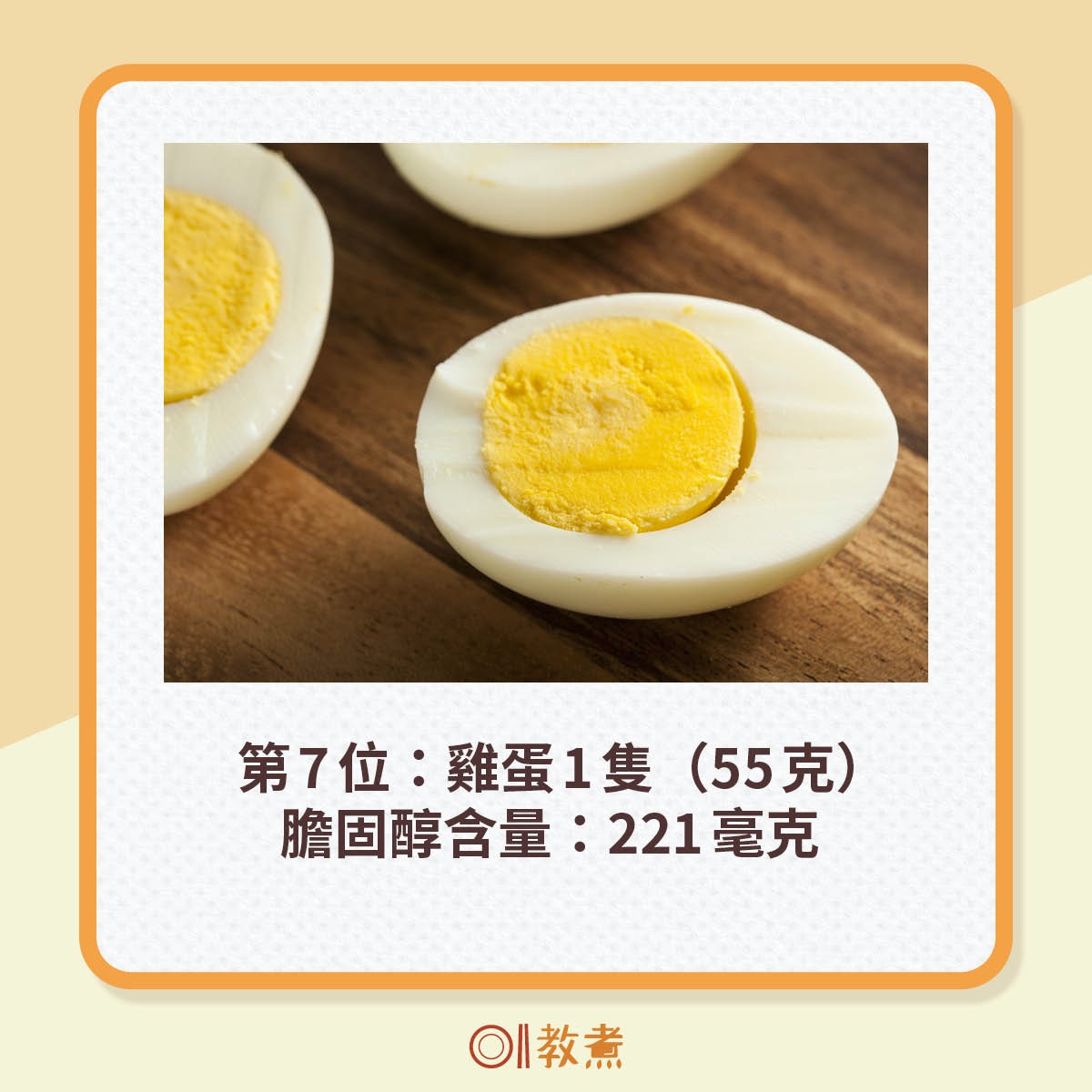 第 7 位:雞蛋 221 毫克 / 1 隻(55 克)
