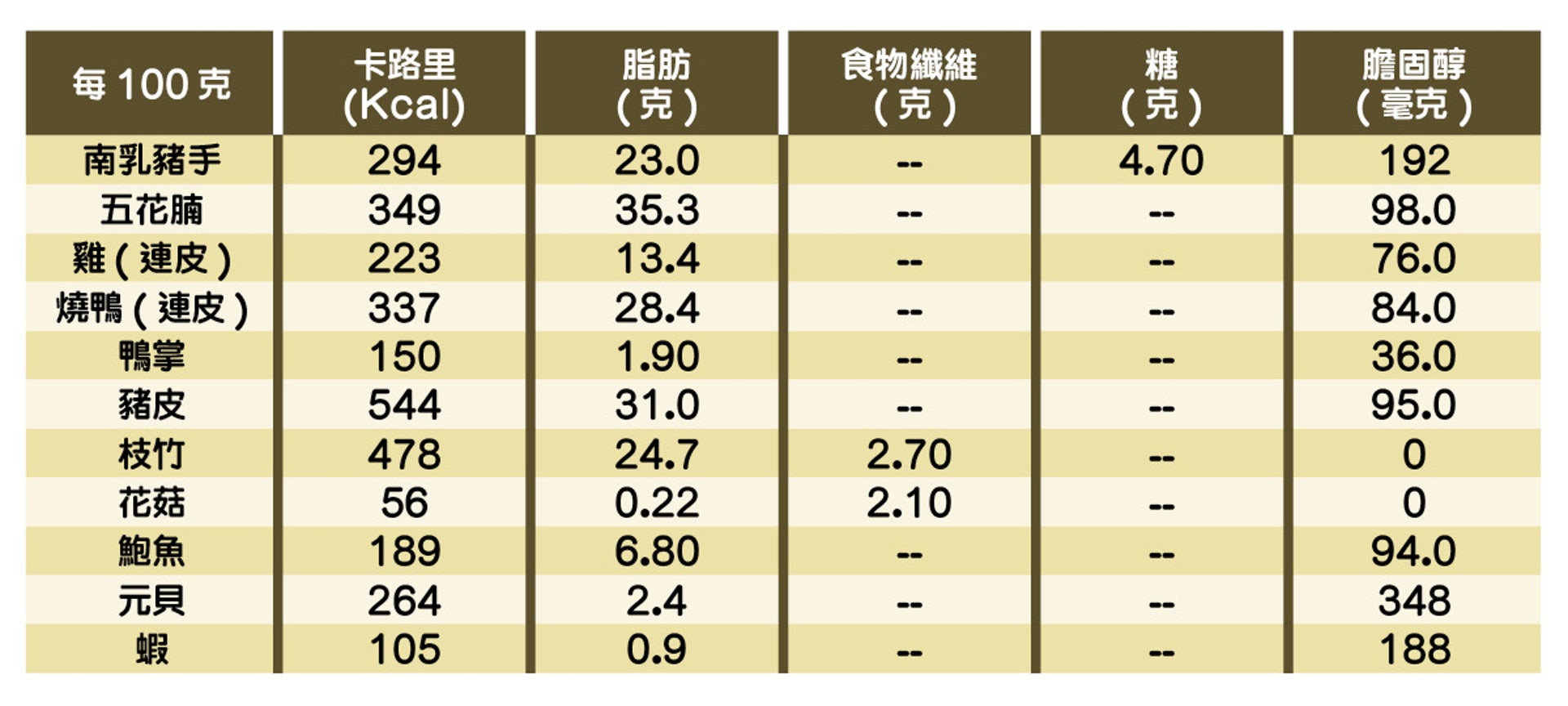 食材方面,Krista 建議可多採用較低脂的海鮮如蝦、蠔、鮑魚、帶子,而肉類宜先去肥膏去皮;或用去皮雞、瘦肉取代腩肉、豬皮;以鯪魚球、白魚蛋取代炸魚蛋等等。