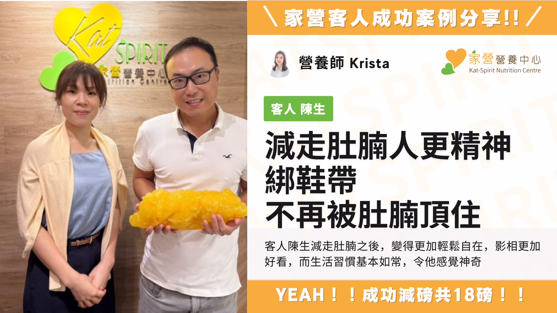 今天,在 Krista 營養師悉心幫助之下🍎,Kayi 自信心提升💖,得到更健康的身體🏃♀️💃,成功達到目標了!✅🏆